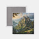 An old majestic castle set amidst lush greenery and rolling hills against the backdrop of a mountain panorama. AI - Technology