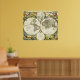 Old map of the world by Nicolaes Visscher, 1658. Border decoration of mythological scenes, showing Zeus, Neptune, Persephone and Demeter..