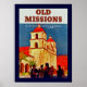 Vintage travel poster for the Old Missions in Santa Barabara, California.