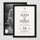 Trendy elegant classy framed refined understated monogrammed retro vintage photo old money sophisticated style wedding invitation featuring a modern contemporary cream ivory and black editorial bold typography. ++++++++++ Easy to personalize with your details, monogram name initials, and your engagement photo on the back. ++++++++++ It is suitable for any season chic contemporary formal timeless old money heritage themed weddings. +++++++++++++ Please note that colors of typography, frame, and background can be changed to match your wedding color palette.
