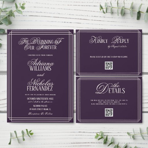 Old Money Dark Purple Wedding Details Enclosure Card
