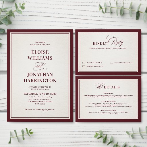 Old Money Modern Formal Burgundy Luxury Wedding Designed by Bliss Design Studio