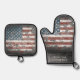 Old Painted Patriotic USA Flag Personalised Oven Mitt & Pot Holder Set