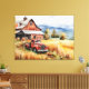 Lovely wall art for anyone who loves country settings, old barns or vintage pickup trucks, this piece has tall late summer grasses in a field where an old red pickup truck is parked with a red barn and hills in the background, all in an autumn setting.
