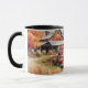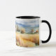 Wonderful mug for anyone who loves old trucks and country living, this mug has tall late summer grasses in a field where an old red pickup truck is parked with a red barn and hills in the background, all in an autumn setting.