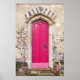 Old pink / fushia door on an Italian building with old grunge stones and bricks.