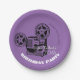Customisable 70th birthday Party paper plate with a retro illustration of a projector. You can easily change text (font, size, colour and position) and background colour by clicking the personalise or customise button. Matching Birthday Party paper napkin, birthday guest book and birthday save the date postcard.