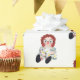 retro rag doll with spectacles and holding daisy bouquet isolated on white