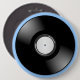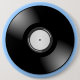 A trendy round blue button in Retro Style, with an illustration of an old vinyl record. Available in other sizes.