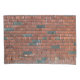 This design features a photo of an old reddish/brownish brick wall. Some of the depicted bricks appear to be worn or damaged, and some are covered in grime or dirt.