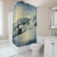 Four links of an old and rusty chain. Stylised black and white image. Closed, occupied, no way inside. Shower curtain to decorate your bathroom for fun and good mood