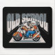 Long haired smiling biker on old school motorcycle with flaming paint job,ape hanger handlebars and up swept exhaust! Old School text! Great for old timer bikers and old school style bike fans!