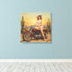 Old school Retro Pin-up girl on motorcycle Canvas Print