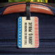 This was purchased as part of a 40th Birthday present for my nephew who is going to Vegas. It is made of high quality, very study and we decided only to put his name on the back of the tag, but you can add a full address if you so wish.