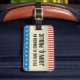 A luggage tag with an old school stars and stripes design, that has a vintage grungy look.
