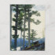 A fine art postcard with the watercolor painting, Old Settlers (1892), by Winslow Homer (1836-1910), an American artist from the realism movement. A landscape of tall pine trees with mountains in the background and black bears climbing the hill.