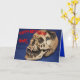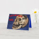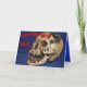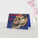An Old Skull with a Blue back ground that's on a Birthday Card.