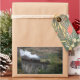 Rectangular photo sticker with an old steam train on high Glenfinnan Viaduct in western Scotland.