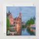 Painting of Bruges old town and Belfry tower at night, Bruges, Belgium