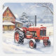 Old Tractor and Barn Snowy Winter Farm Christmas Square Sticker