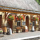 A photographic design of a beautiful old Victorian era steam railway station.