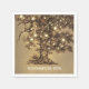 Gorgeous vintage brown (kraft style) wedding paper napkins with rustic old oak tree and carved wooden love heart initials.