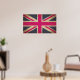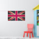 An illustrated graphic design of an Old Union Jack Flag in shades of pink and white against a background colour of dark blue with white hearts suitable for all zazzle products.