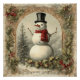 This nostalgic Christmas poster features a classic snowman with a top hat and red scarf, framed by holly, berries, and evergreen branches. The muted vintage tones give it an old-fashioned charm, perfect for creating a warm and festive atmosphere during the holiday season. Ideal for decorating cosy spaces, gifting, or adding a touch of nostalgic cheer to Christmas celebrations.