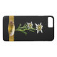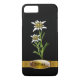 Protect your iPhone in this elegant Old World look black case, with graphic artwork of the Alpine flower edelweiss. Graphics of a golden brown ribbon, runs across the bottom of the case, with a plaque like text area. Personalise the black text for yourself or as a lovely gift idea. Chose glossy or matte finish for this stunning case.