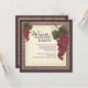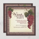 A beautiful cluster of luscious red grapes invites your guests to a wonderful wine-themed tasting event. Perfect for a gathering at your home or for an event held at a winery or vineyard. In this design, the grapes and leaves are given a textured effect and seem to glow on a background of aged parchment with old script writing. Very old-world in its styling, this design makes a unique and very personal invite for your party.