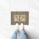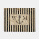 This nautical monogram door mat features a black and beige striped background with a black anchor in the centre and world map overlay. Personalise the monogram with your own initials. Designed by world renowned artist Tim Coffey.