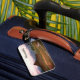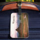 This luggage features an old barn in Wyoming. There are buffalo in the background and a stream in the foreground.