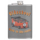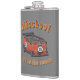 The design features a retro-style red old school van with the number "35" on the front and sides. The bus has a distinctive tuning design with a cut-off roof and a large rear spoiler, giving it a racing and hot rod look. Above it is written "Oldschool" in eye-catching vintage font, while underneath the sentence "back to the roots" underlines the nostalgic character of the design. The color palette includes warm retro tones such as red, beige, orange and black.