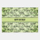 This design background on all three sheets features a green olive and greenery pattern. SHEET ONE features a template text message in an oval a pattern over the entire background. SHEET TWO features the same template text centred in a row across the sheet length and tiled into the background and SHEET THREE has a template text message tiled across the background. Personalise, keep, or remove any text for a three custom designed sheets for an occasion. You can even personalise the text on a sheet with a name.