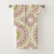 This bold mandala design radiates outward in layers of olive green, soft blush rose, and deep berry tones. The centre features a burst of petal-like shapes that expand into concentric rings of organic patterns, each one alternating between smooth curves and geometric accents. The balance of symmetry and movement creates a mesmerising effect that draws the eye inward while keeping the overall composition dynamic. With its warm yet vibrant colour palette and hypnotic rhythm of lines, this design feels both modern and timeless, perfect for anyone who appreciates striking geometric patterns and layered visual detail.