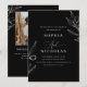 Set the tone for your wedding with this elegant botanical black invitation featuring delicate olive branch illustrations paired with white floral line art. Perfect for minimalist, Mediterranean, rustic, or contemporary weddings. This design offers a clean and refined aesthetic that blends nature inspired charm with timeless style.