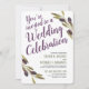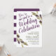 A set of modern wedding invitations featuring painted style Mediterranean olives. The words "You're invited to a Wedding Celebration" frame the front of the invitation along with your wedding details underneath it. On the reverse side are white and sangria purple stripes. All Individual elements of this invitation are customisable (including the bold text) simply use the customisation function. Enjoy creating and making it your own!