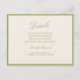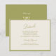 This olive estate wedding details card brings refined European romance to your invitation suite. Designed with timeless calligraphy and subtle Island Citrus warmth, it captures the elegance of Italian countryside weddings while staying clean and modern. Perfect for the old-money minimalist bride who loves quiet luxury with fresh Mediterranean touches. Pair with olive envelopes, deckled edges, or soft ivory paper for a cohesive suite. Personalize your ceremony and RSVP details effortlessly.