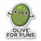 Olive For Puns Funny Olive Fruit Pun features a cute olive looking really happy because he lives for puns! Perfect pun gift for family and friends who love cute olive puns.