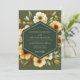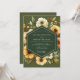Embrace an earthy and elegant aesthetic with this stunning botanical design. A deep olive green backdrop provides a rich canvas for radiant golden yellow and creamy white blossoms. Delicate anemones and wildflower buds are nestled amongst lush, verdant greenery, creating a romantic meadow-inspired arrangement for your special day.