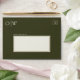 Elevate your wedding stationery with this Olive Green 5x7 Wedding Envelope featuring an elegant ivory address panel framed in gold and olive borders. Designed to pair seamlessly with the Tropical Peacock Palm Collection, this envelope makes addressing effortless while keeping a refined, cohesive look.
