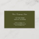 Olive Green black Elegant Pattern design business cards. Personalise with your own name address and information on both the front and the back. The back is blank so you can add your own logo or photo. Customise by changing font type and font colour. Simple contemporary business card for corporate business use for your company or your personal card. Discounts are available when purchased in bulk. This style is also available in other colours.