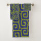 Olive Green &blue Abstract Pattern Bath Towel Set