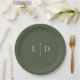 Olive Green Elegant Minimalist Monogram Wedding Paper Plate