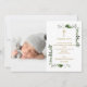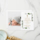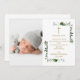 Olive Green Floral Photo Baptism Christening Thank You Card