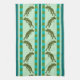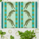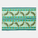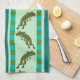 Olive Green Frog Pattern with Chequerboard Stripes Tea Towel