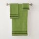 Bring a classic feel to your bath with this stylish bath towel set and create an interesting and eye-catching look in your home with a distinct iterlaced pattern. Featuring olive green interlaced geometric lines pattern and green stripes, it adds an elegant addition to your bathroom. These towels make wonderful housewarming gifts or wedding gifts, great as anniversary, new home or general gifts too.