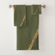 Olive Green Gold Bronze Geometric Glam Chic Bath Towel Set