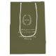 Olive green leaf oval wreath monogram wedding medium gift bag