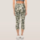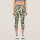 Olive Green Leaf Pattern with Custom Text and Logo Capri Leggings